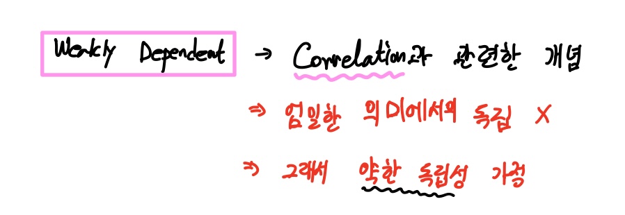 그러한 의미에서 독립은 아니지만 독립과 비슷(유사)한 약한 독립성 가정정도로 이해하시면 됩니다.