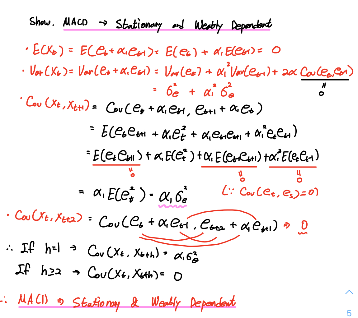 이제 MA(1) 과정이 Weakly Stationary하고 Weakly Dependent 함을 보이도록 하겠습니다.