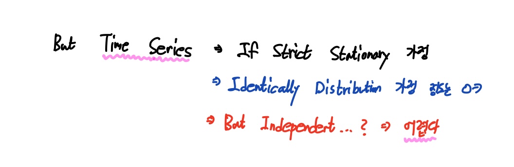 만약 우리가 가진 시계열 자료가 Strict Stationary 하다면 이 시계열 자료는 Identically Distribution을 따른다고 하였죠.