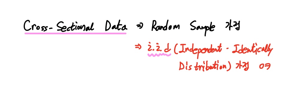 우리가 횡단면 자료(Cross-sectional Data)에서는 회귀분석을 하기 위해 Random Sampling 가정을 하였습니다.