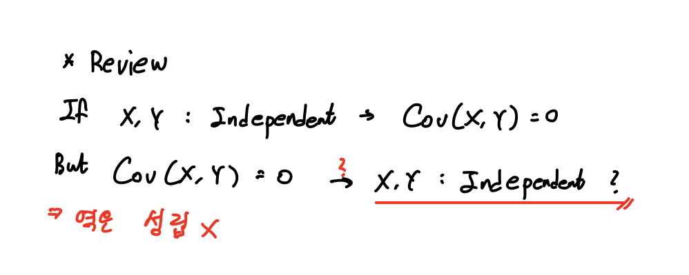 만약 두 변수가 서로 독립이라면, 이 두 변수의 상관계수(공분산)은 0이 됩니다.