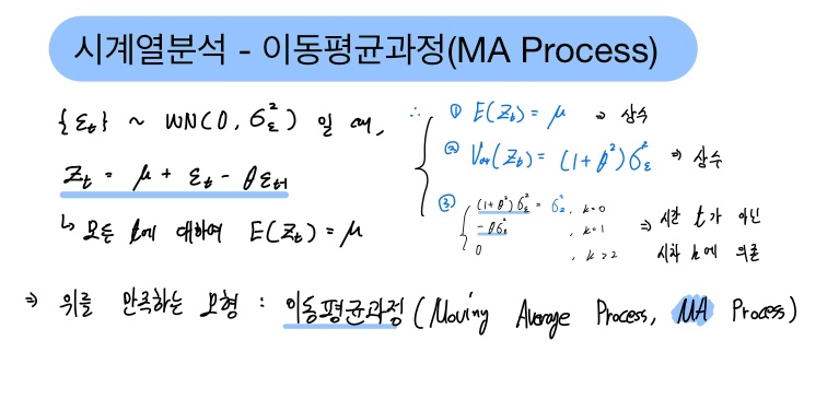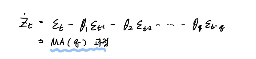 위 성질을 만족하는 모형을 이동평균과정(Moving Average Process) 혹은 MA모형이라고 부릅니다.
