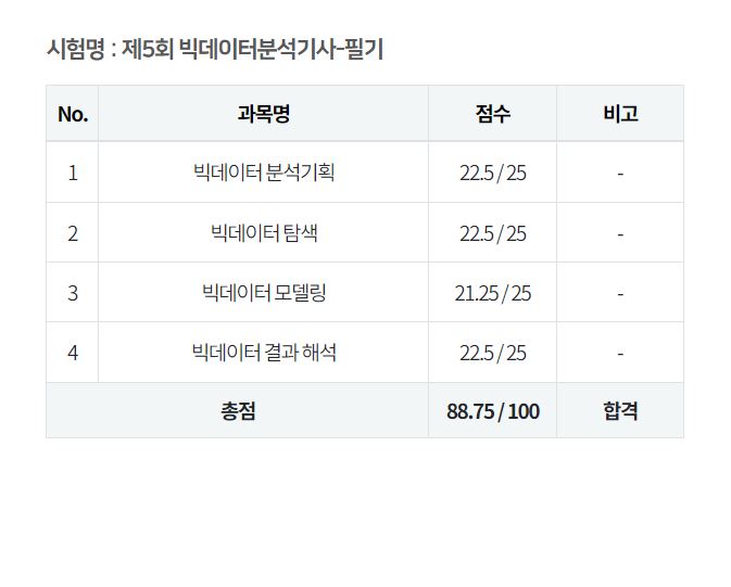 | [자격증] 빅데이터분석기사 실기 합격 후기(책 추천 / 공부 기간 등) (9) | 2023.06.20 |
