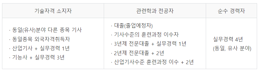 아무래도 기사 자격증이다보니 자격에 제한이 있습니다.