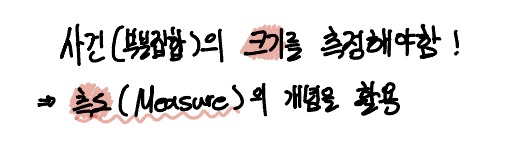 우리는 이를 위해 측도(Measure)의 개념을 활용해야 합니다.측도(Measure)를 쉬운 예시로 한번 설명해보죠.
