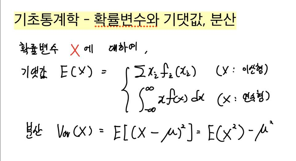 오늘은 이와 비슷한 개념인 기댓값, 분산에 대해서 다뤄보겠습니다.