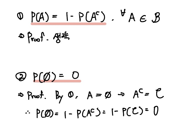 그러면 공집합의 확률은 1에서 여사건의 확률(1)을 뺀 값이 되니 0이 됨을 쉽게 보일 수 있습니다.
