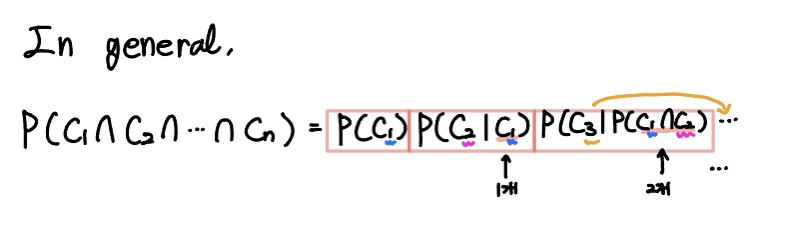 만약 n개의 사건의 Joint Prob. 을 구하고 싶으시다면, 이는 다음과 같이 일반화해서 표현할 수 있습니다.