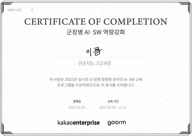 이 프로그램은 국방부와 과학기술정보통신부에서 지원하여 진행되는 만큼 교육 과정이 모두 무료입니다.