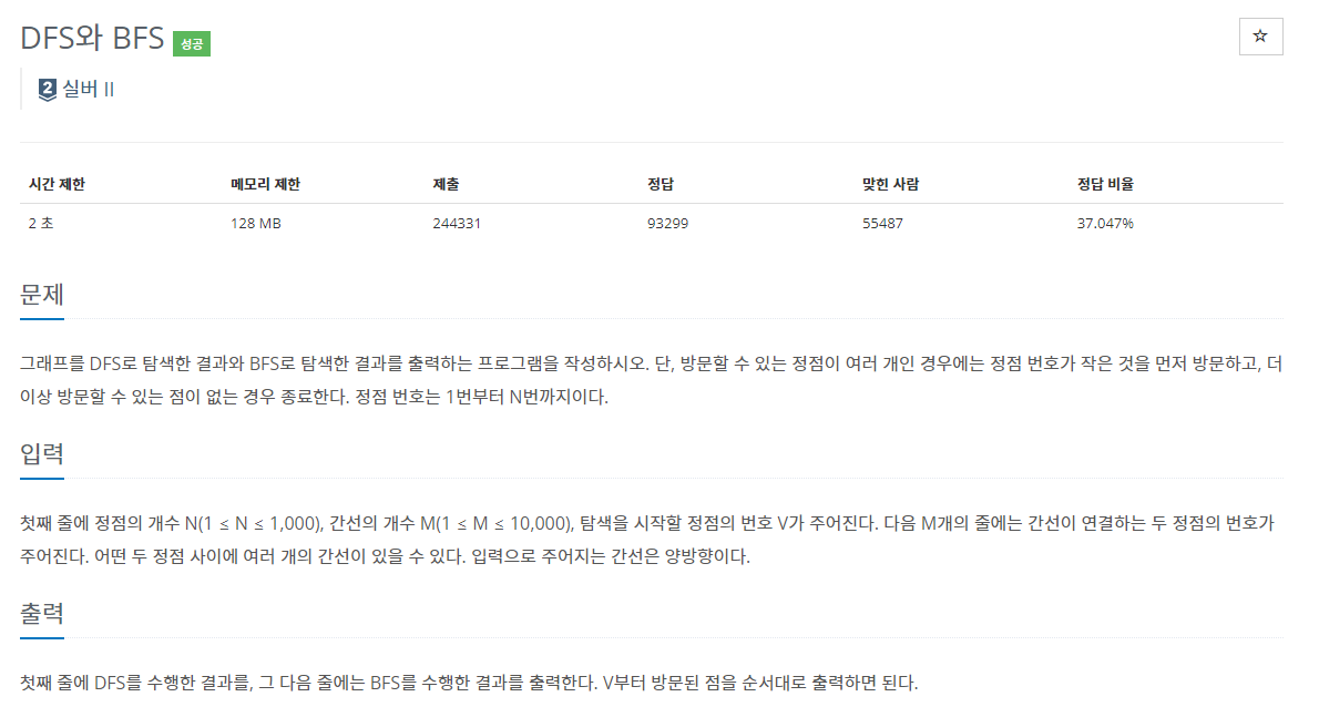 https://www.acmicpc.net/problem/1260