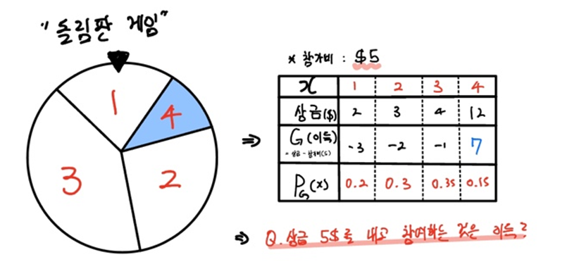 각 숫자에 따른 확률이 주어져있다고 가정했으므로, 기대 수익을 계산해보면 되죠.
