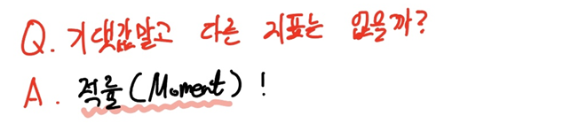 그래서 우리는 이를 위해 적률(Moment)을 사용합니다.