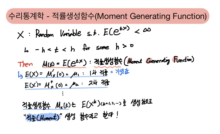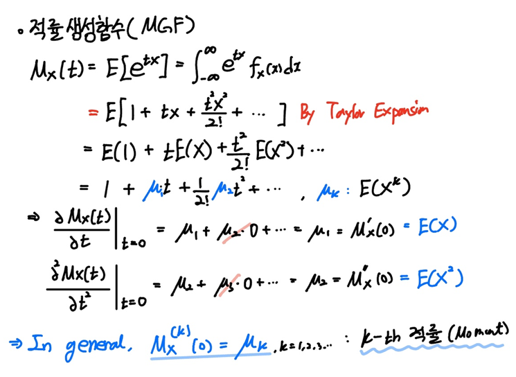 그래서 우리는 이 적률(Moment)을 생성하는 함수 $M_x(t)$를 적률생성함수라고 하는 겁니다.