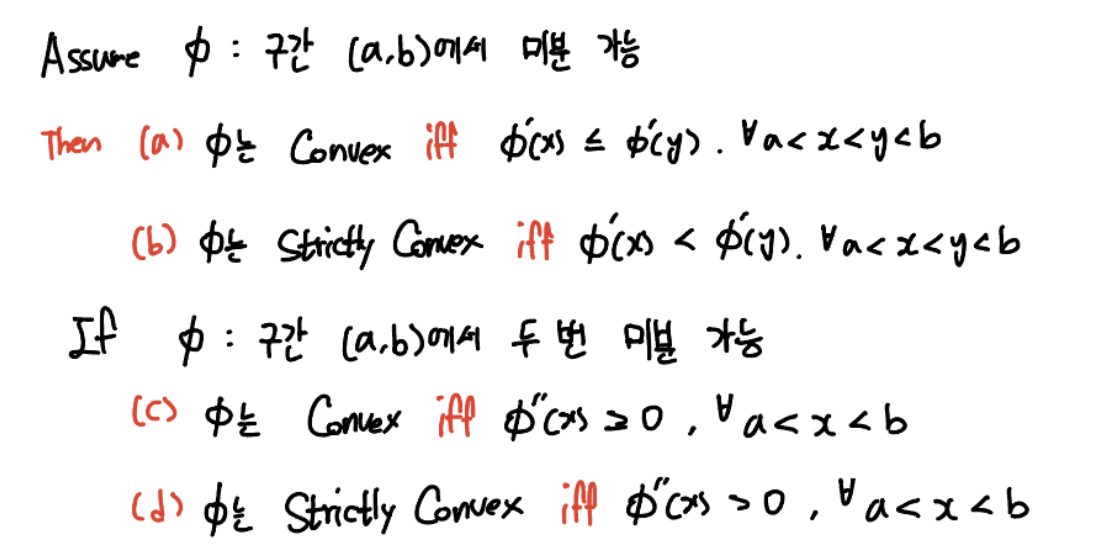 그러면 임의의 함수 $\phi$가 다음 조건을 만족할 경우, $\phi$는 Convex function입니다.