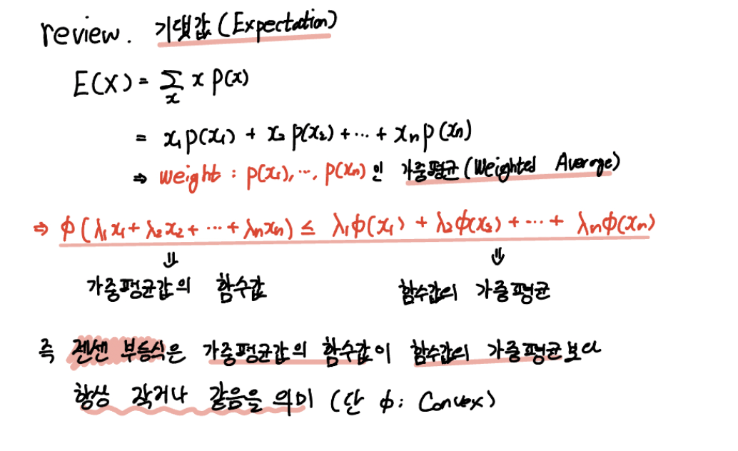 아직까지는 젠센 부등식이 와닿지 않으실 것 같습니다. 와닿으신다면 다행이고요.