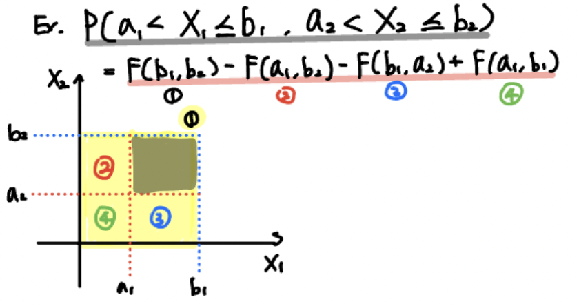 만약 joint cdf를 알고 있다면 위 그림과 같이 특정 구간의 확률을 구할 수 있습니다.