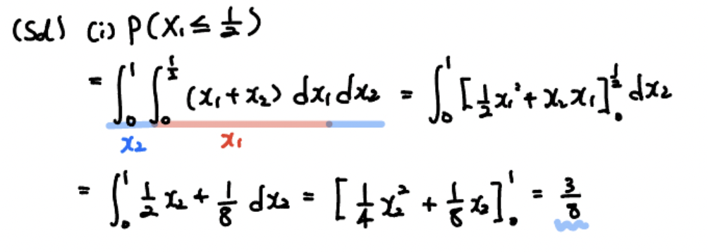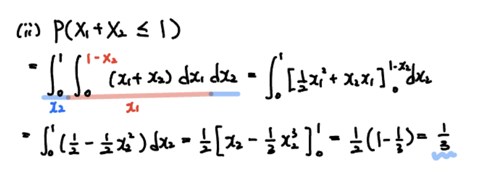 그리고 (2)번 문제는 $X_1 + X_2 \leq 1$ 라는 조건이 있음을 고려하여 적분 구간을 산정해야 합니다.