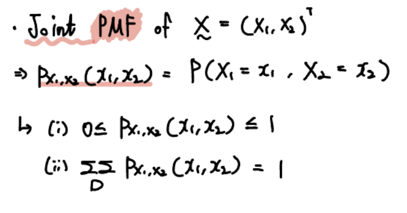 만약 주어진 확률변수가 이산확률변수라면 확률벡터는 이산형 확률벡터(Discrete Random Variable)이라고 할 수 있겠죠.