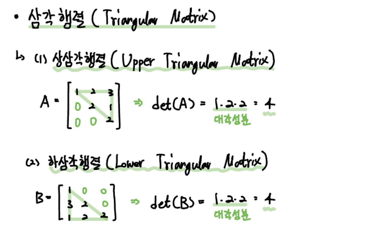 물론 주대각성분이 1이고 나머지는 0이므로, 상삼각행렬이 될 수도 있고, 하삼각행렬이 될 수도 있죠.