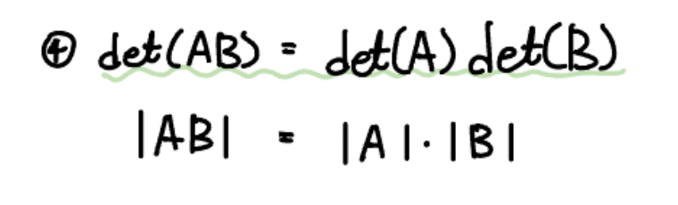 두 행렬 $A$, $B$ 의 곱의 행렬식은 각각의 행렬식의 곱과 같다는 것입니다.