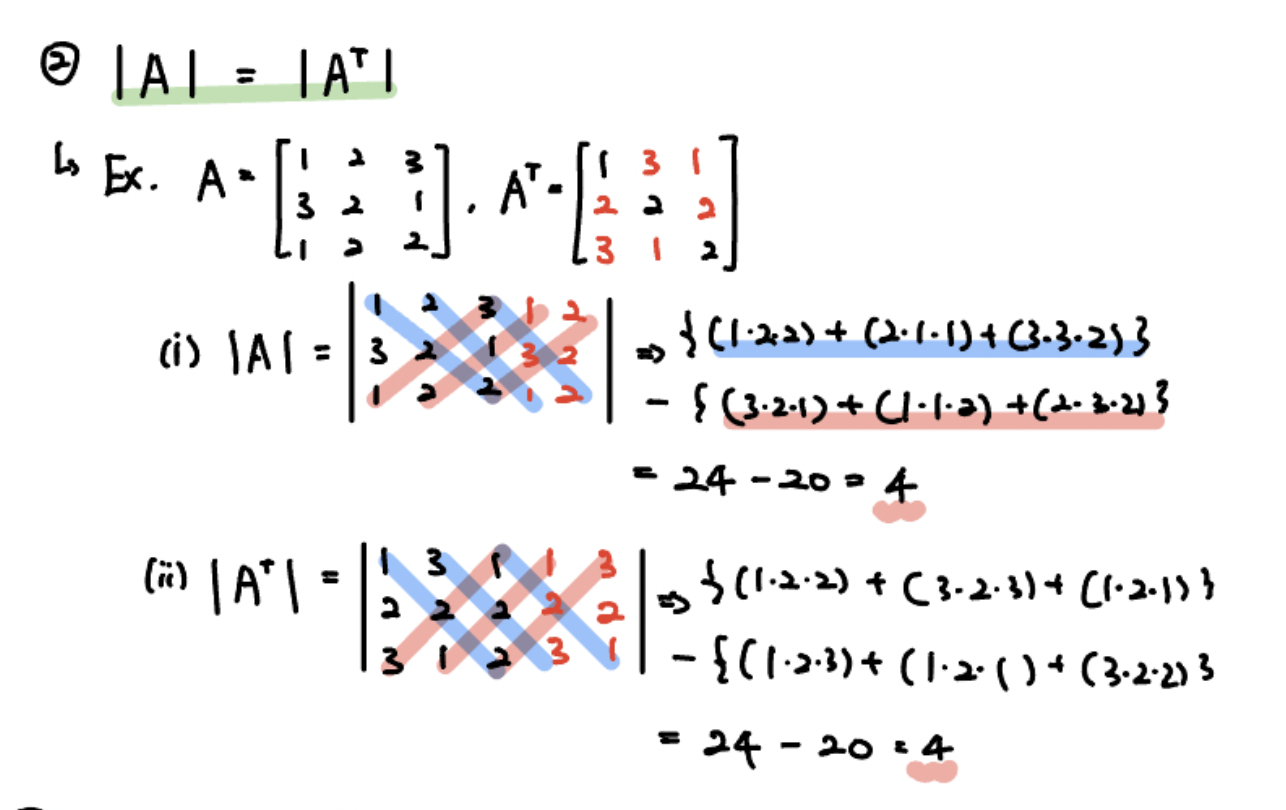 (2) 행렬 $A$와 전치행렬 $A^{T}$ 의 행렬식은 같다.