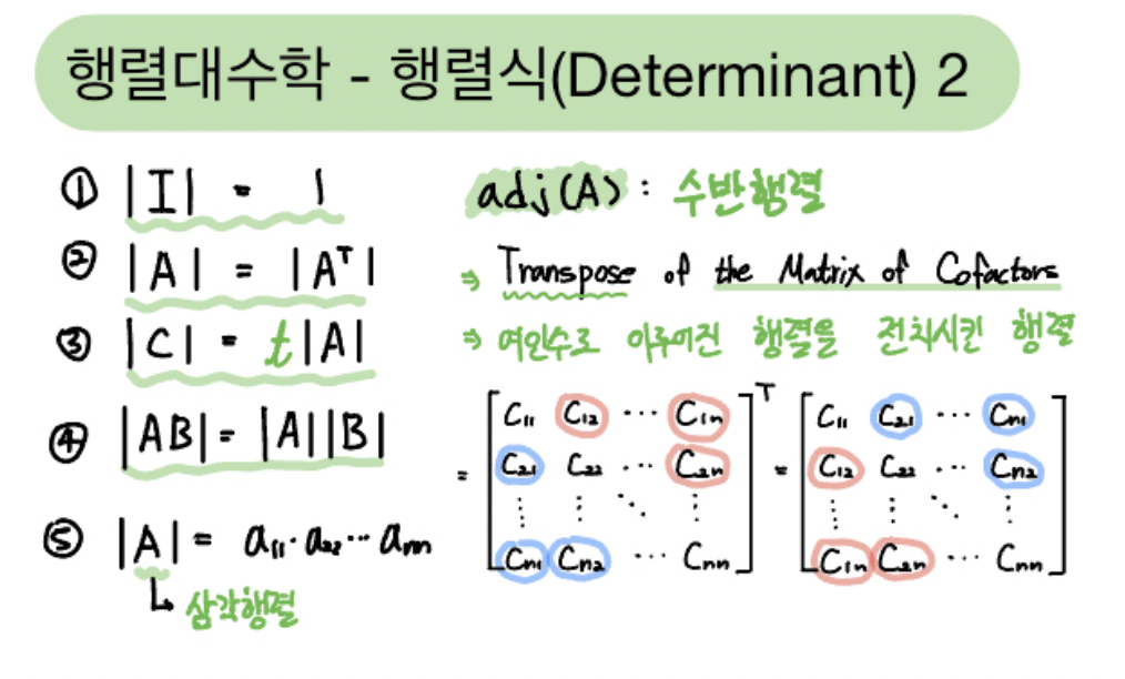 이번 포스팅에서는 행렬식의 유용한 성질, 그리고 차후 포스팅을 위해 필요한 개념인 수반행렬(Adjoint)에 대해 다뤄보겠습니다.