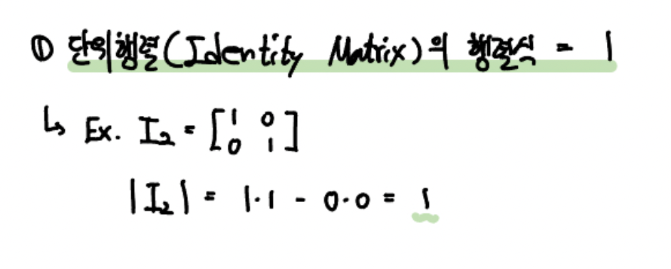 (1) 단위행렬(Identity Matrix)의 행렬식은 항상 1이다.