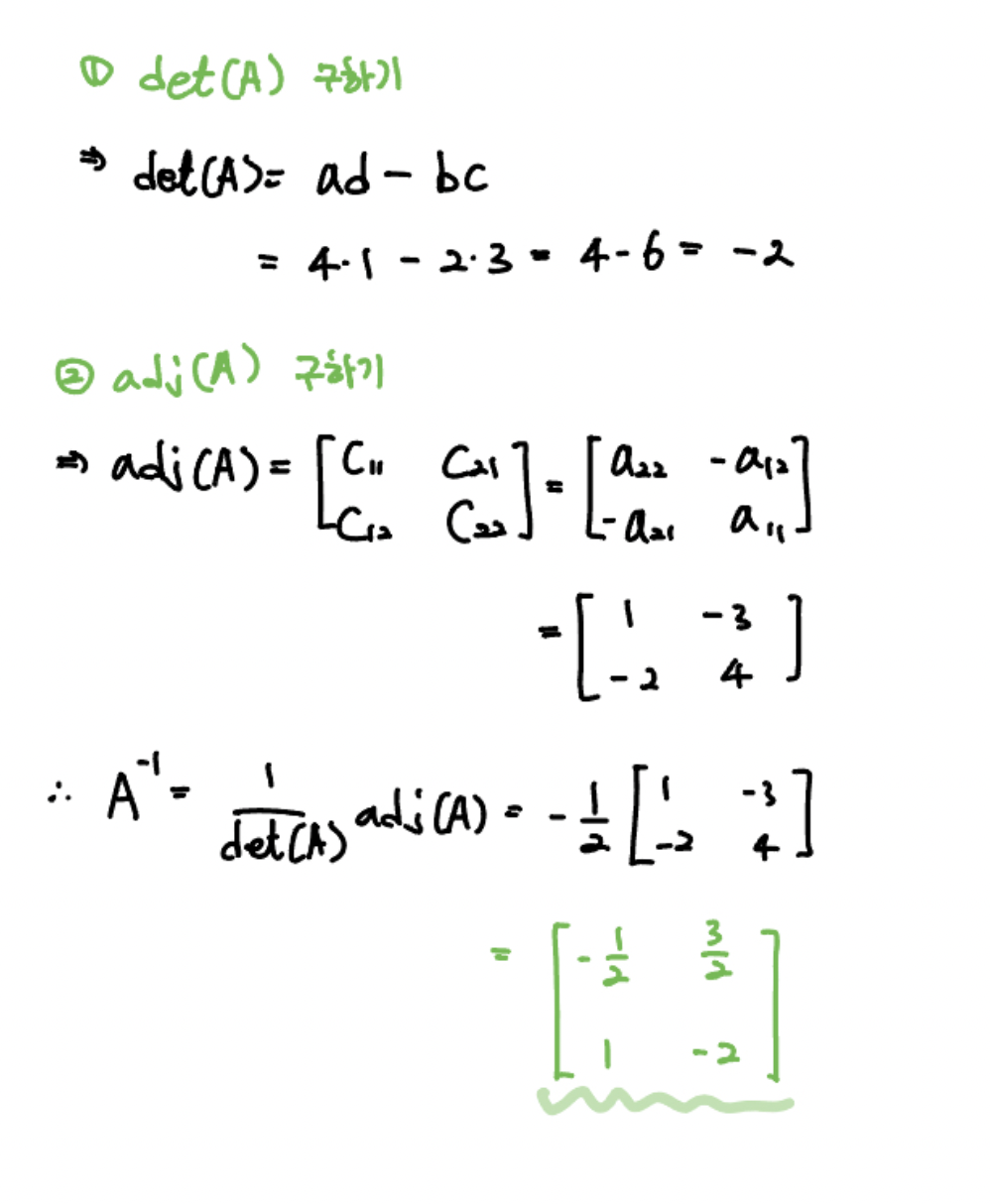 그러면 한번 행렬식과 adjoint를 이용해 역행렬을 구해봅시다.
