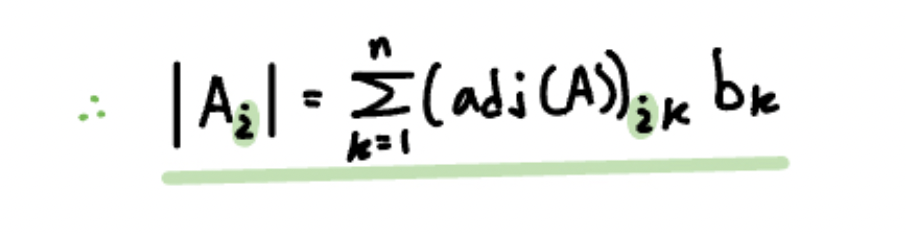 $$ |A_{i}| \, = \, \sum_{k=1}^{n} (\, adj\,\,(A))_{ik} \, b_{k} $$