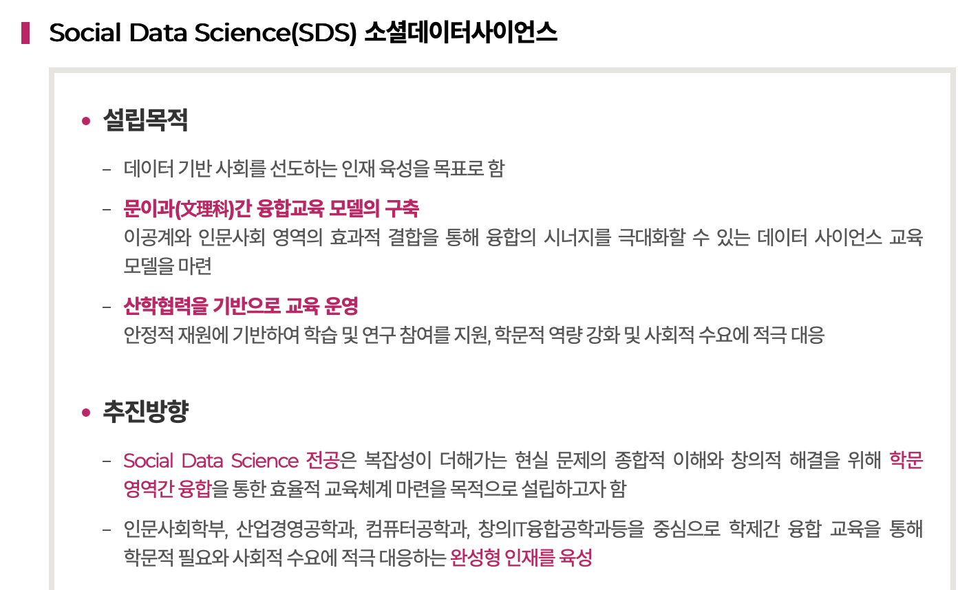 물론 그렇다고 소셜데이터사이언스 전공이 전문대학원이나 특수대학원은 아니고요.