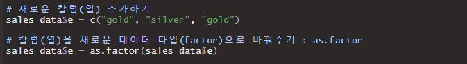 또한 factor라는 데이터 타입이 있는데요. 이는 범주형 데이터를 표현할 때 쓰입니다.