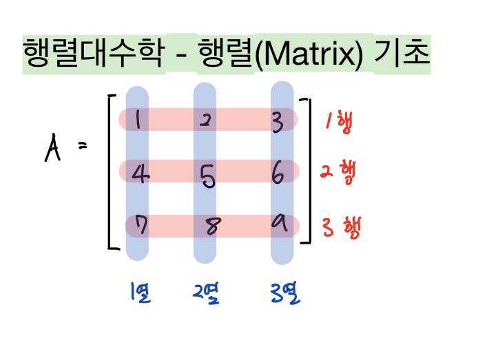 따라서 행렬 A는 3 x 3 행렬(Matrix)라고 정의할 수 있습니다.