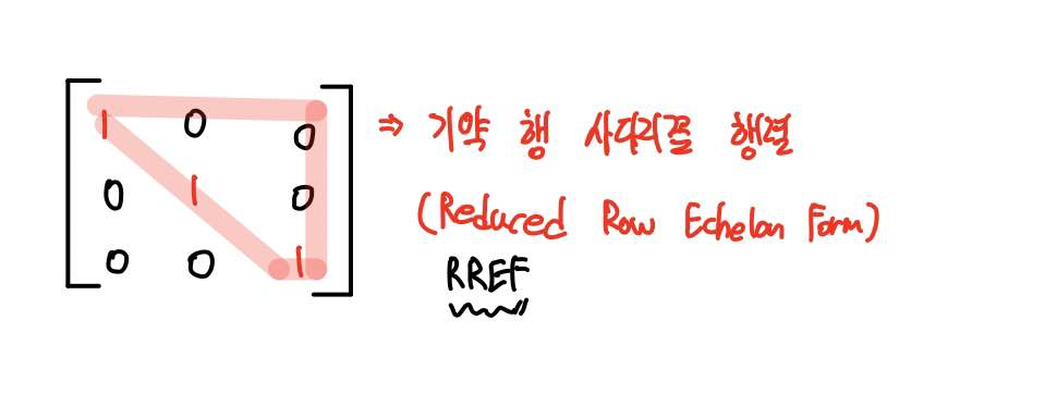 다시 한번 RREF를 살펴보면, 대각성분을 1로 만들어주고, 대각성분을 제외한 나머지 성분은 0이 됨을 알 수 있습니다.