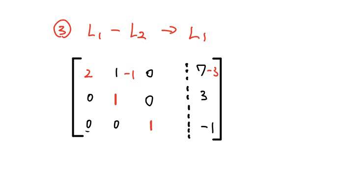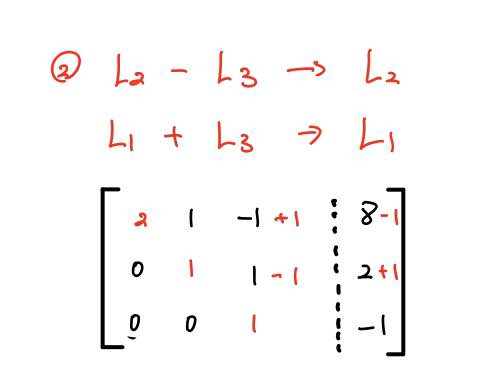 구하는 과정은 가우스 소거법과 마찬가지로 기본 행 연산을 이용하면 됩니다.