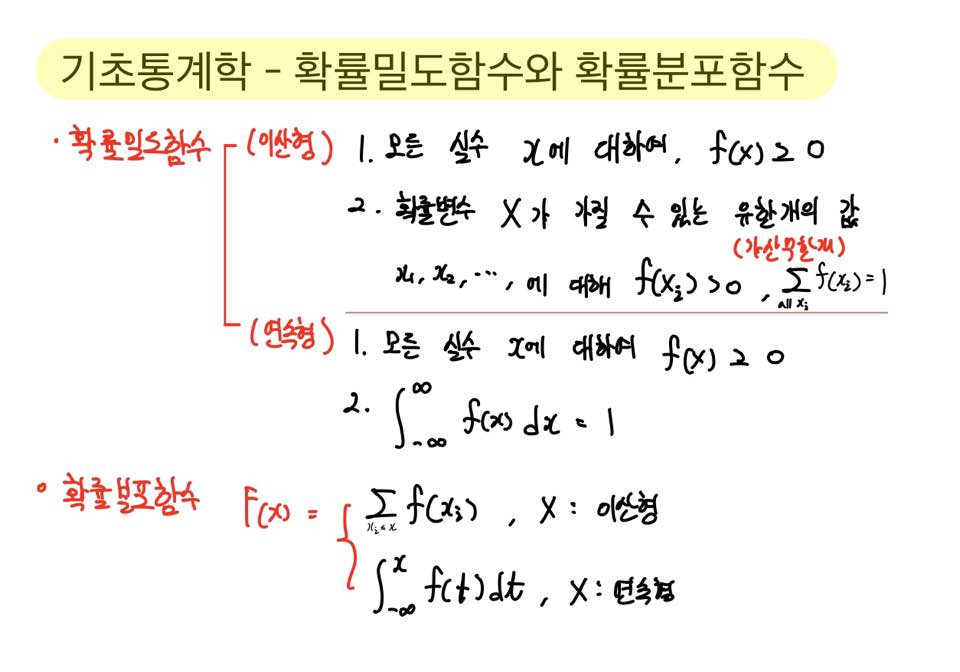 확률변수가 가질 수 있는 값에 대해서는 0보다 커야한다는 것을 잘 기억하시면 됩니다.