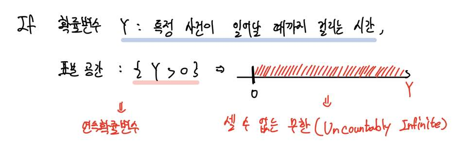 확률변수 Y가 가질 수 있는 값은 특정한 값이 아닌 영역으로 표현이 될 것이며, 이 영역은 셀 수 없는 무수히 많은 값을 포함하겠죠.