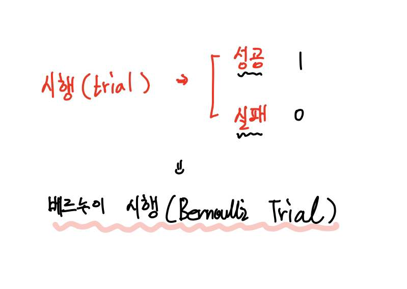 그리고 이렇게 두 가지의 결과만을 갖는 시행을 베르누이 시행이라고 합니다.