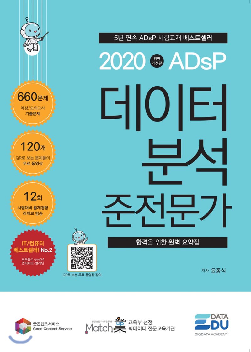 1. 데이터산업진흥원에서 공식 출판한 두껍고 비싼 책은 굳이 살 필요없다. (나중에 ADP 준비할 때 구입하셔도 됩니다.)