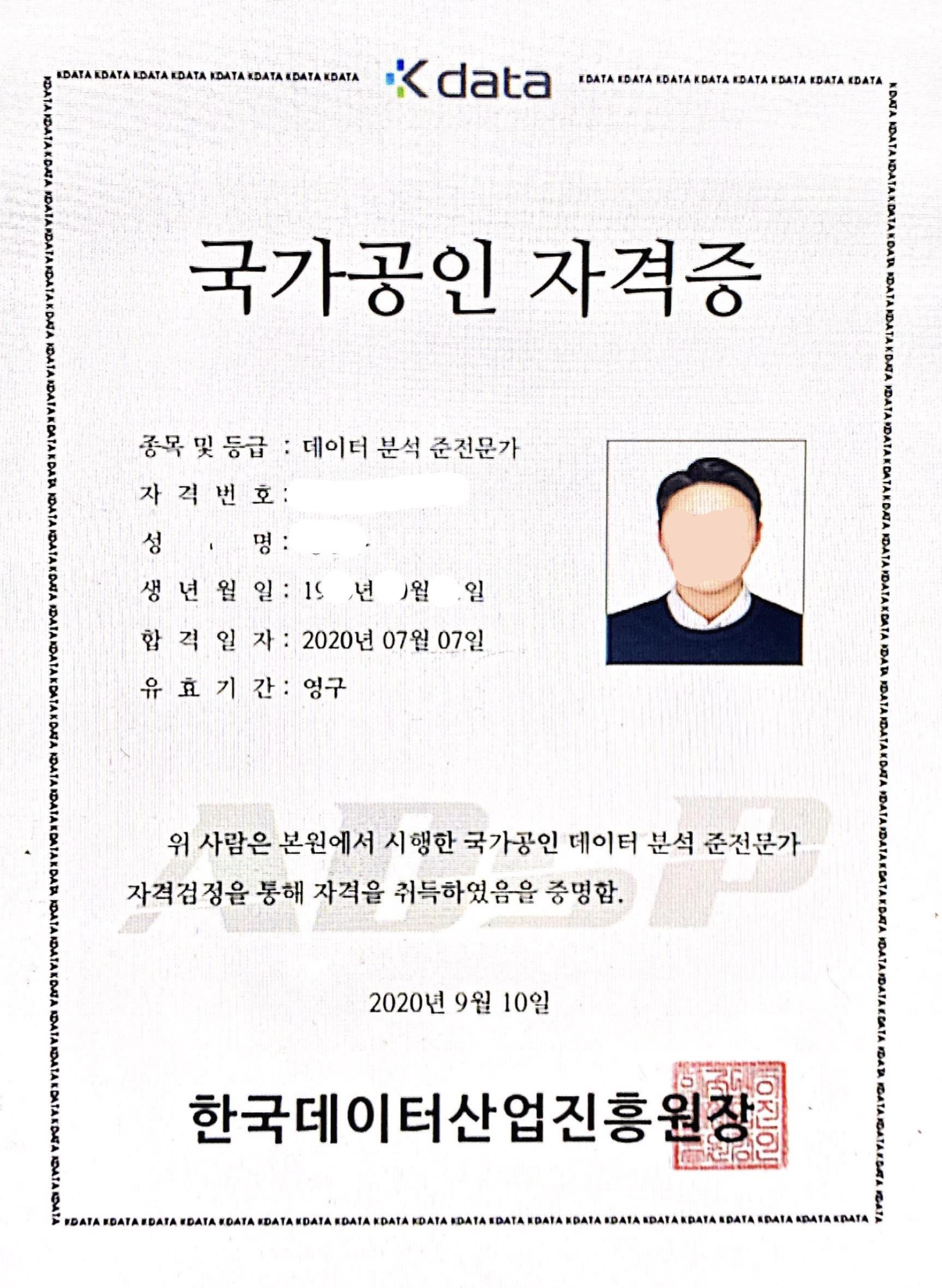 지난 포스팅( 2020/07/01 - [Records/Certificate] - [자격증] SQLD(SQL 개발자) 자격증 취득 후기(책 추천 / 공부 기간 등) )에서도 언급했다시피 데이터에 관한 자격증이 그리 많지가 않습니다.