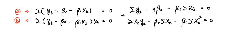 위 식을 연립하여 β0, β1의 식을 유도할 수 있습니다.