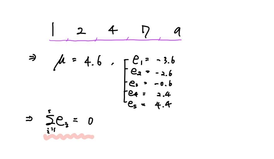 위 데이터의 평균은 4.6이고, 편차 = 데이터 - 평균 공식을 이용해 편차를 위와 같이 구한 후,