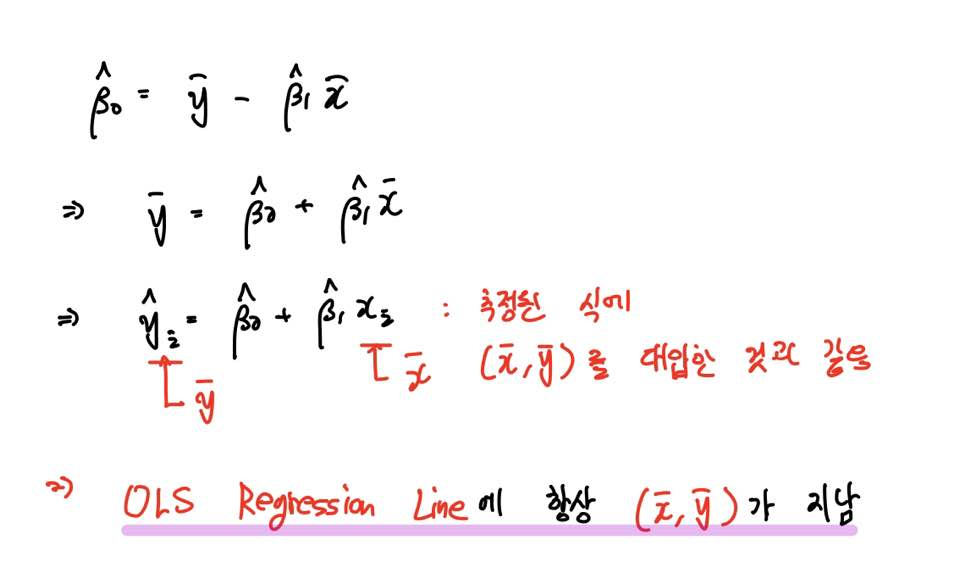 따라서 OLS 회귀직선은 항상 (x_bar, y_bar)를 지납니다.