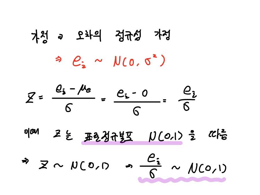 먼저 오차가 기댓값이 0이고 분산이 σ²인 정규분포를 따른다는 오차의 정규성 가정 하에