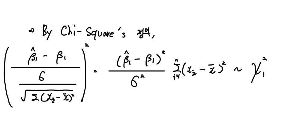 (이때 오차항은 서로 독립이라는 가정이 존재하므로, 카이제곱분포의 유도가 가능합니다.)