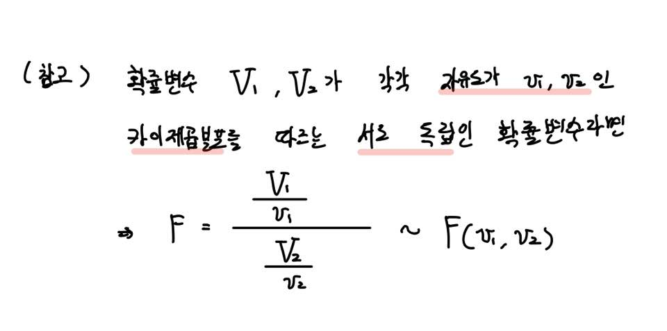 F-분포는 카이제곱분포를 따르는 서로 독립인 확률변수 간의 결합으로 나타낼 수 있습니다.