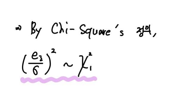 이때 e/σ를 제곱하면 이는 자유도가 1인 카이제곱분포를 따릅니다.