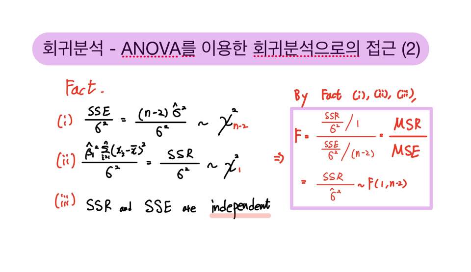 3번째 fact는 그냥 SSR과 SSE가 서로 독립이라는 사실만 짚고 넘어가겠습니다.