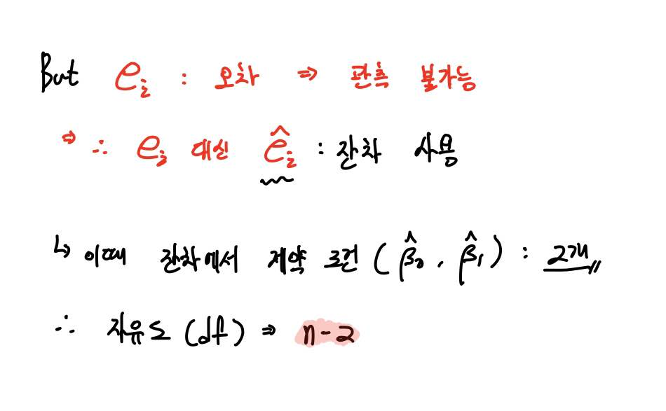 (물론 오차를 잔차로 바꾸면서 자유도는 n-2가 됐죠)