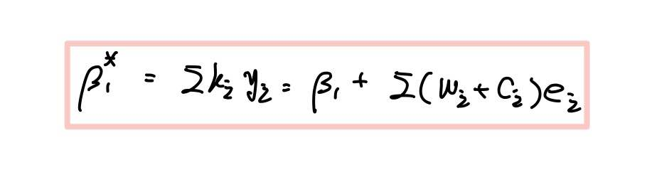 핵심은 β* 또한 OLS 추정량 β^과 마찬가지로 모수 β에 오차항이 더해진 꼴로 나타낼 수 있다는 것이죠.