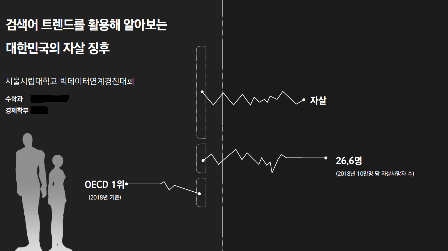 이번 포스팅은 2019년에 교내 대회에 참여하며 지인들과 같이 진행했던 프로젝트인 '검색어 트렌드 데이터를 활용해 알아보는 대한민국의 자살 징후' 프로젝트에 대해 소개해볼까 합니다.